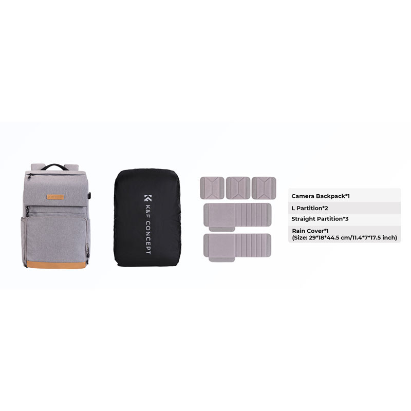 A K&F Concept nagy kapacitású 22 literes kamerahátizsákját utazáshoz, ingázáshoz, mindennapi használatra tervezték. A rekesz mérete 25x14x27cm.