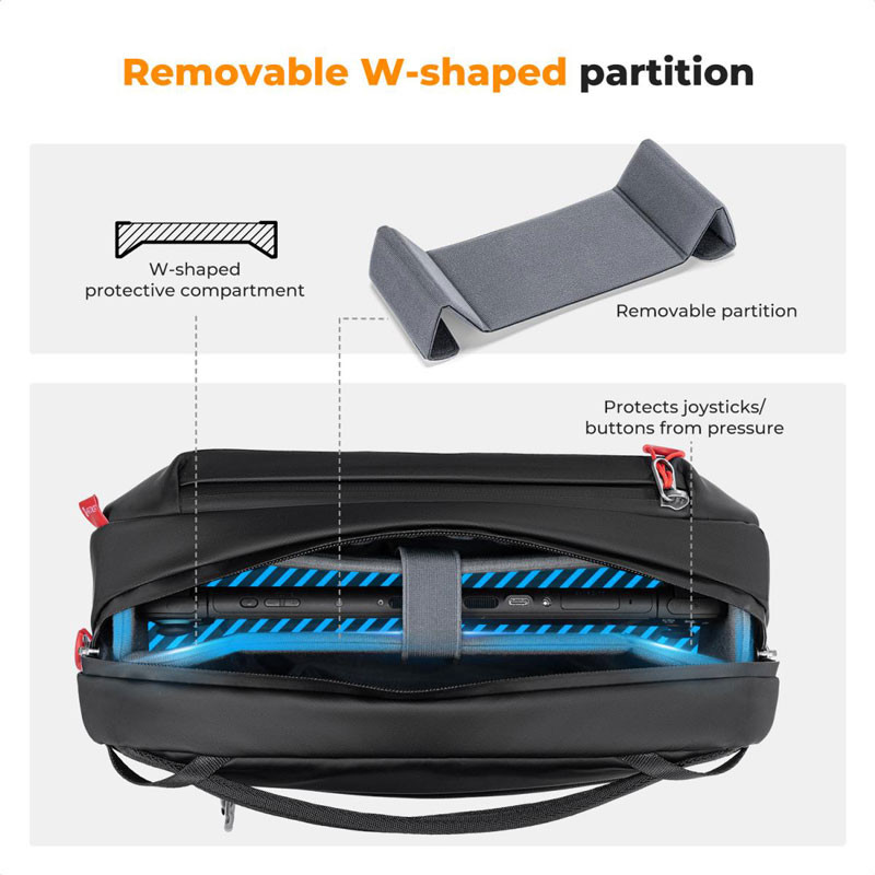 A hordtáska túllép a hagyományos hordtáskák korlátain, széles körben kompatibilis a Steam Deck OLED/Nintendo Switch 2/Legion Go S stb. készülékekkel. A játékrajongók számára készült, könnyen hordozható utazáskor és szállításkor, például családi összejöveteleken, kirándulásokon vagy ingázáskor.