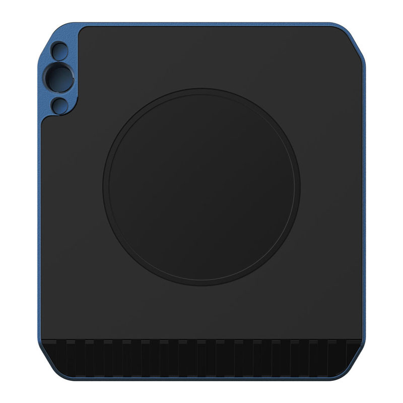 Zökkenőmentes mobil filmkészítési élményt nyújtó, metálkék színű fémházzal, amely kompatibilis MagSafe technológiával azonnal csatlakoztatható iPhone 15 Pro és Pro Max készülékéhez.
