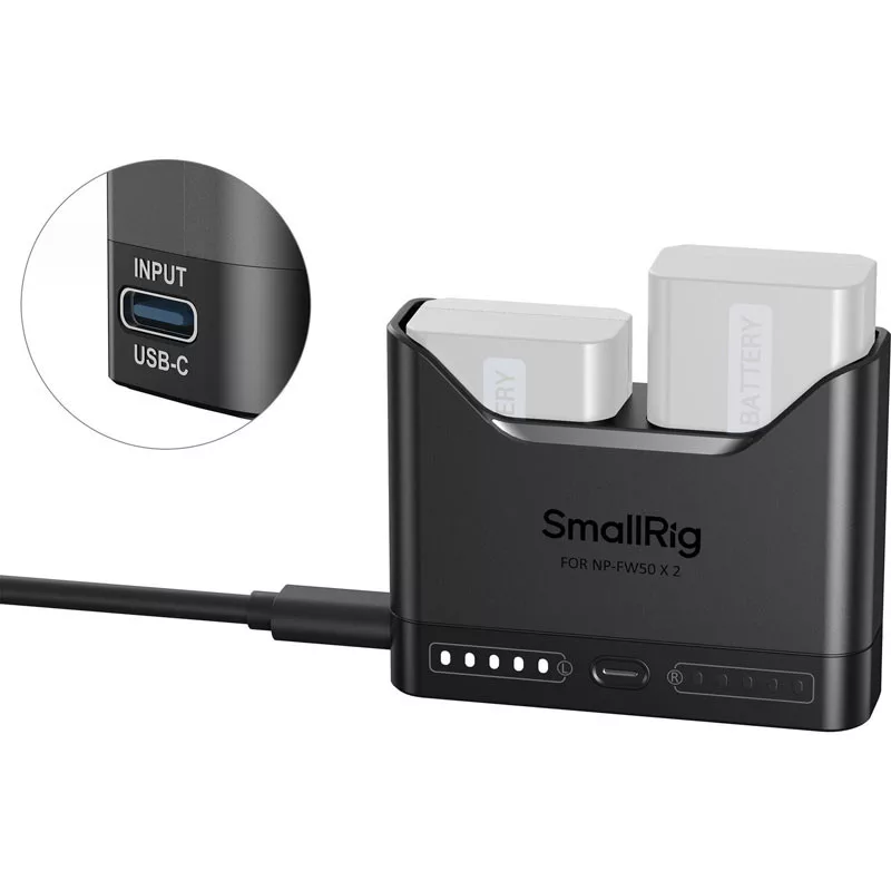 A SmallRig NP-FW50 5493 kamerás akkumulátortöltő teljes kompatibilitást garantál a Sony NP-FW50 akkumulátorokkal, és képes mind az eredeti, mind a harmadik féltől származó akkumulátorok töltésére.