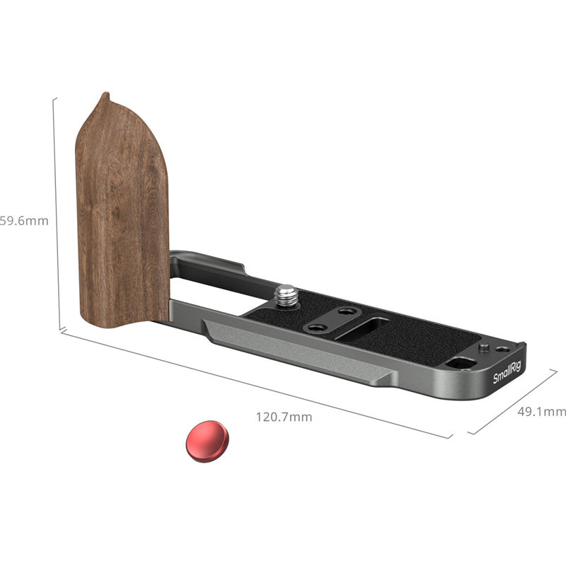 Az L alakú markolat teljes hozzáférést biztosít a kamera összes interfészéhez, beleértve az akkumulátor rekeszét, a fókuszgyűrűt, a memóriakártya nyílást és a hangszórót. Könnyű és kompakt, súlya mindössze 52 g. A készlet tartalmaz egy lapos csavarkulcsot is, amely megkönnyíti az összeszerelést és szétszerelést, valamint egy exponáló gomb fedelet, amely javítja a tapintható visszajelzést fényképezés közben.