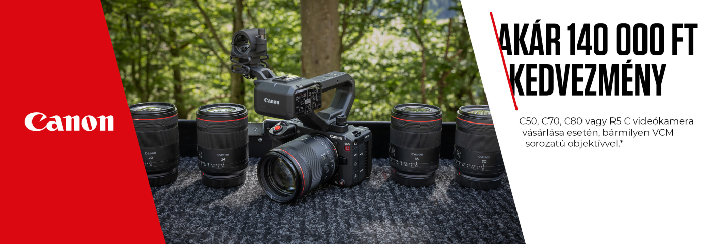 - Canon EOS C50 vagy C80 + Canon VCM objektív: 140 000 Ft csomagkedvezmény