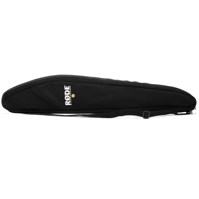 The RØDE Boompole Bag is a shoulder-carried, zippered neoprene carrying bag that allows the entire microphone kit—boom pole, microphone, shock mount, and other accessories—to be transported comfortably and securely.