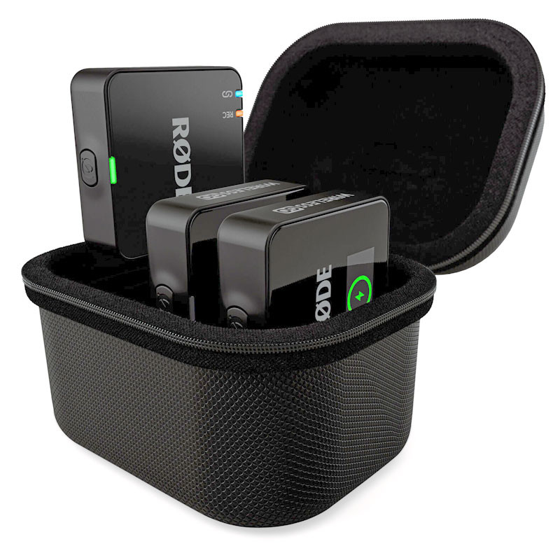RODE Wireless GO GEN3 Charge Case+ töltő és tartó tokkal csomagban, fekete