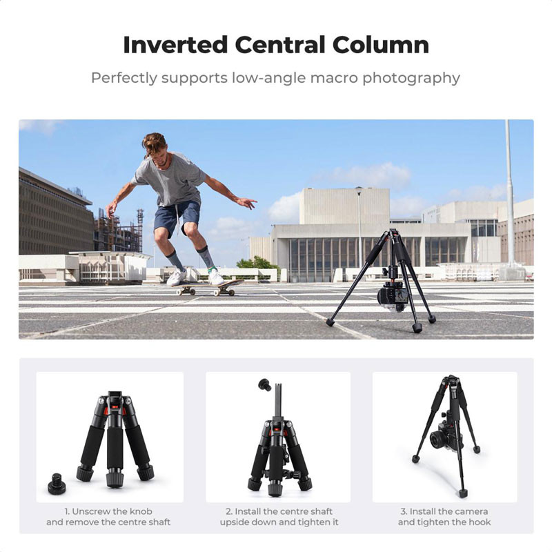 Weighs only 638g, has 5-section legs, and the storage length (excluding the gimbal) is 16.5cm, and the length including the gimbal is 23.5cm.
