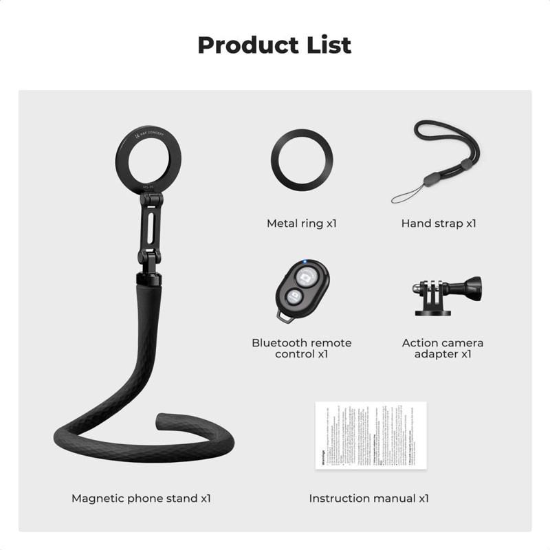 The magnetic ring design allows the phone to rotate 360° for horizontal and vertical shooting, and the two-stage damping shaft allows for pitch adjustment.