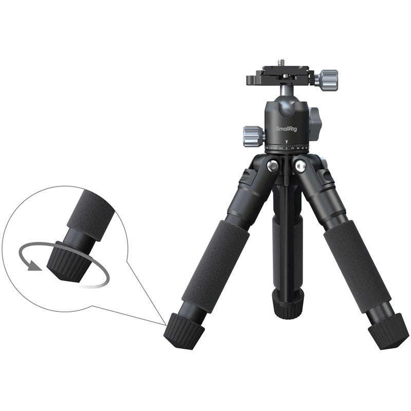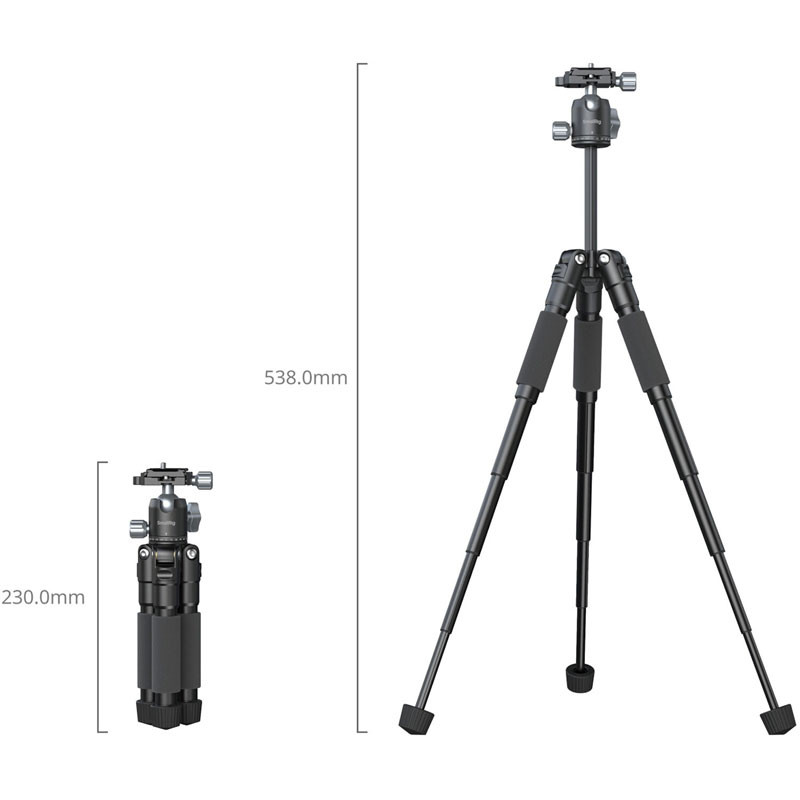 This compact and versatile VT-20 Pro Portable Desktop Tripod from SmallRig is the ideal solution for photographers, videographers, and live streamers who need a portable and sturdy support system. Its foldable aluminum alloy legs and lightweight design—measuring just 23 cm and weighing 635 grams when collapsed—make it exceptionally easy to transport. When extended, the vertically adjustable center column provides a working height of up to 53 cm inches, accommodating a range of shooting perspectives.