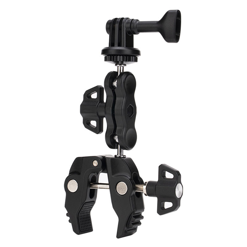 The power clip features two 1/4"-20 threaded holes and one 3/8"-16 threaded hole, allowing connection to commonly used photography accessories such as magic arms, phone holders, mini LED lights, and small monitor mounts to meet various shooting expansion needs. The inner sides of the clamp jaws are lined with anti-slip rubber, which enhances friction and helps prevent damage or scratches to railings, desktops, and other mounting surfaces.