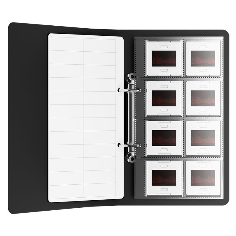When using, simply place the trimmed 35mm film into the included acid-free ABS slide mounts, then insert the slide mounts into the binder pages. The set includes 48 pairs of film sleeves and is compatible with other scanning, light table, and projection equipment for highly flexible use. Also included are 2 internal note sheets and 1 external label sticker for easy recording, categorization, and quick retrieval of film content.