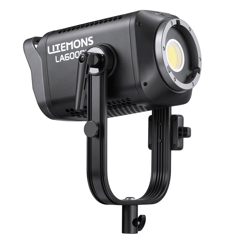The LITEMONS LA600Bi Bi-Color LED Monolight Kit from Godox features 2800-6500K CCT tuning with a bright and powerful output of 212,500 lux at 1 meters at 5600K with its included BR30 reflector. Content creators and vloggers can add greater lighting depth and variety to photography and videography productions with the 600W light and 11 special effects for unique and intricate lighting setups; the light's high 95 CRI and TLCI ratings ensure accurate light reproductions. Ideal for long productions, the light features three fan cooling modes, auto, medium, and high, for maximum efficiency. Quickly power the light with its included AC/DC power adapter and change your lighting settings with the fixture's onboard controls and wired DMX capabilities. Or, adjust the light remotely via Godox's mobile phone app and Bluetooth up to 60 meters away. To further refine your output, attach the light and its built-in U-bracket to a separately available light stand and attach a lighting modifier with the fixture's Bowens S mount to create a more precise lighting setup. A carry bag is included for storage and transportation.