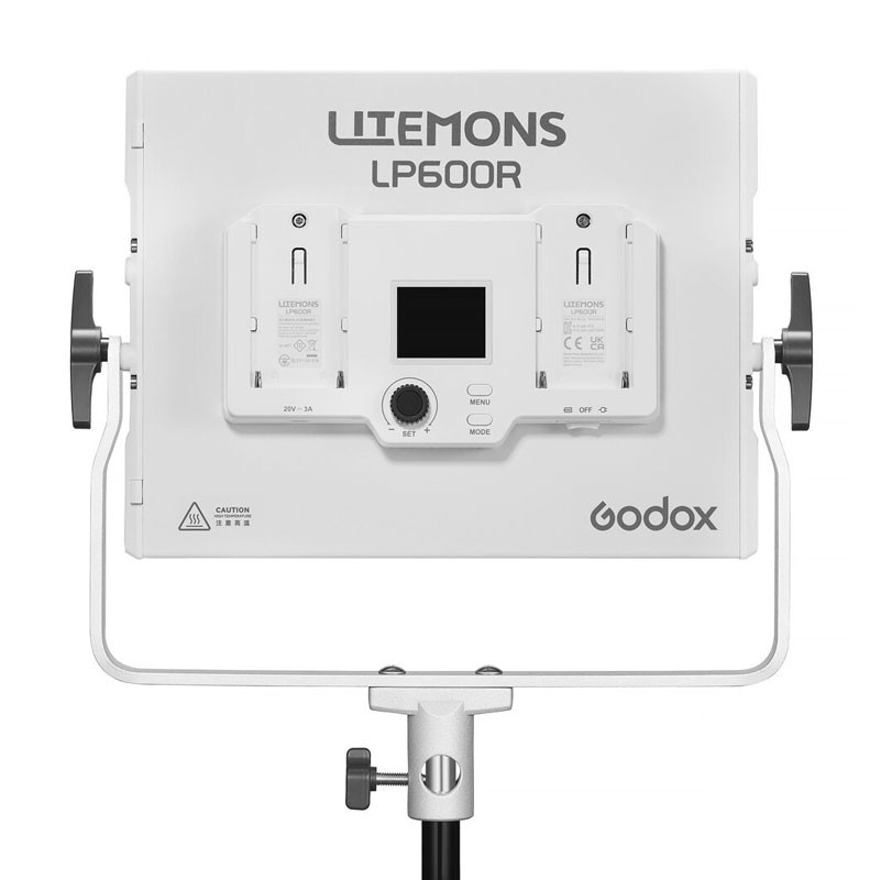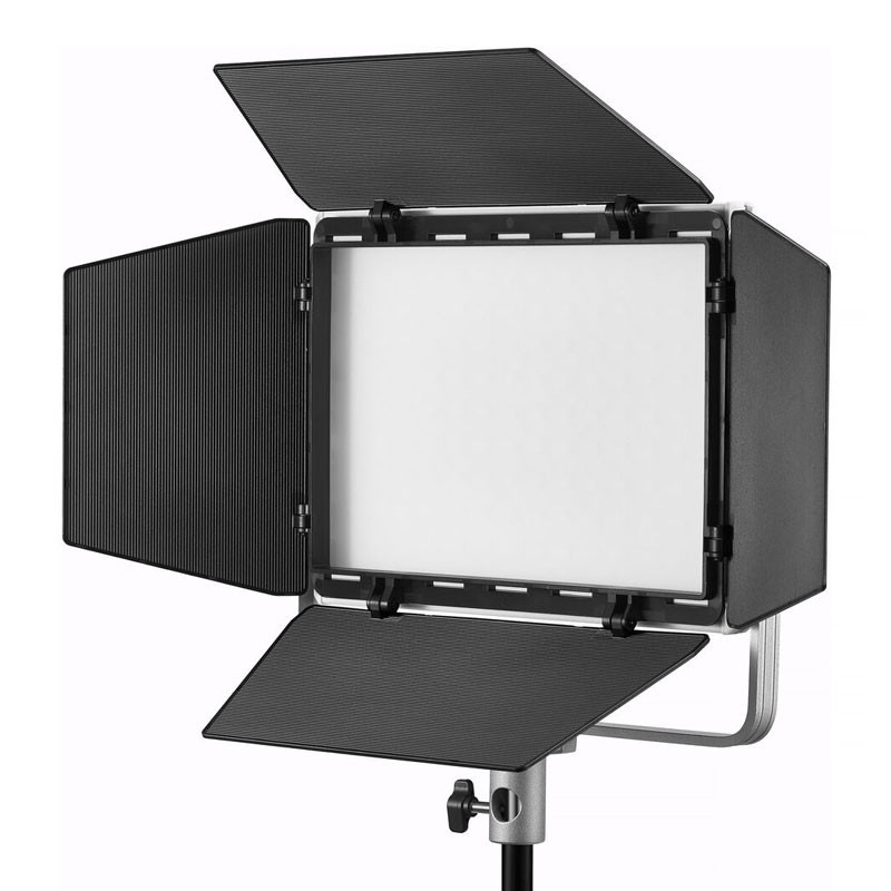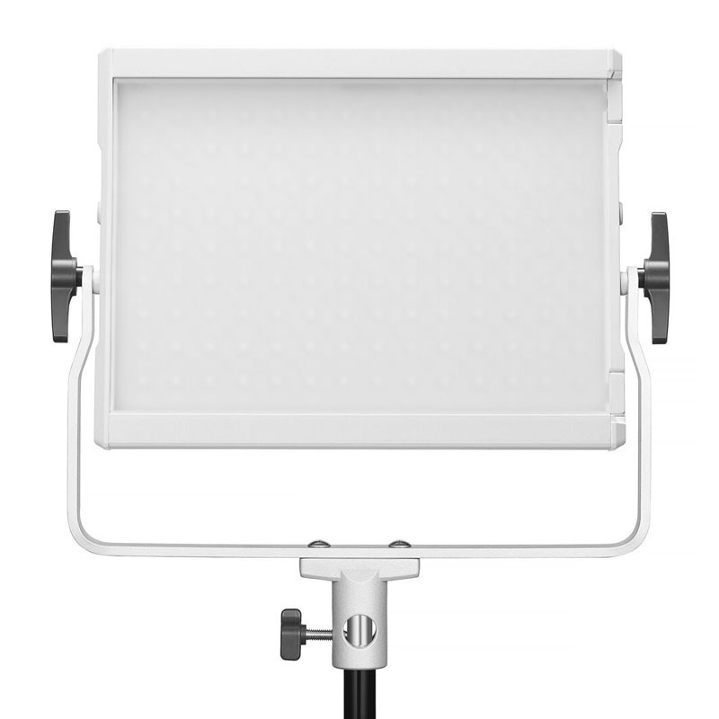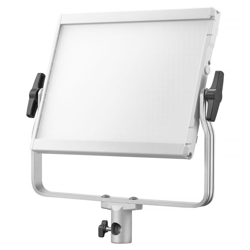 The panel is fully dimmable from 0 to 100% and allows adjustments locally on the fixture or remotely with the Godox Light app from your smartphone. On the back, a screen displays brightness percentage, color temperature, and other essential settings. The app lets you control the light via Bluetooth from up to 15 meters away.