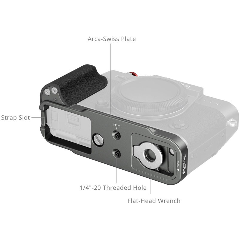 Az L alakú markolat teljes hozzáférést biztosít a kamera összes interfészéhez, beleértve az akkumulátorrekeszhez, a fókuszgyűrűhöz, a memóriakártya-nyíláshoz és a hangszóró-csatlakozókhoz. A készlet tartalmaz egy lapos kulcsot is a könnyű összeszereléshez és szétszereléshez, valamint egy exponáló gomb fedelet, amely javítja a tapintható visszajelzést fényképezés közben.