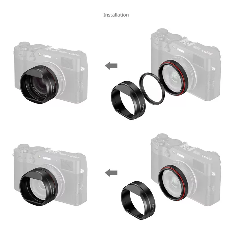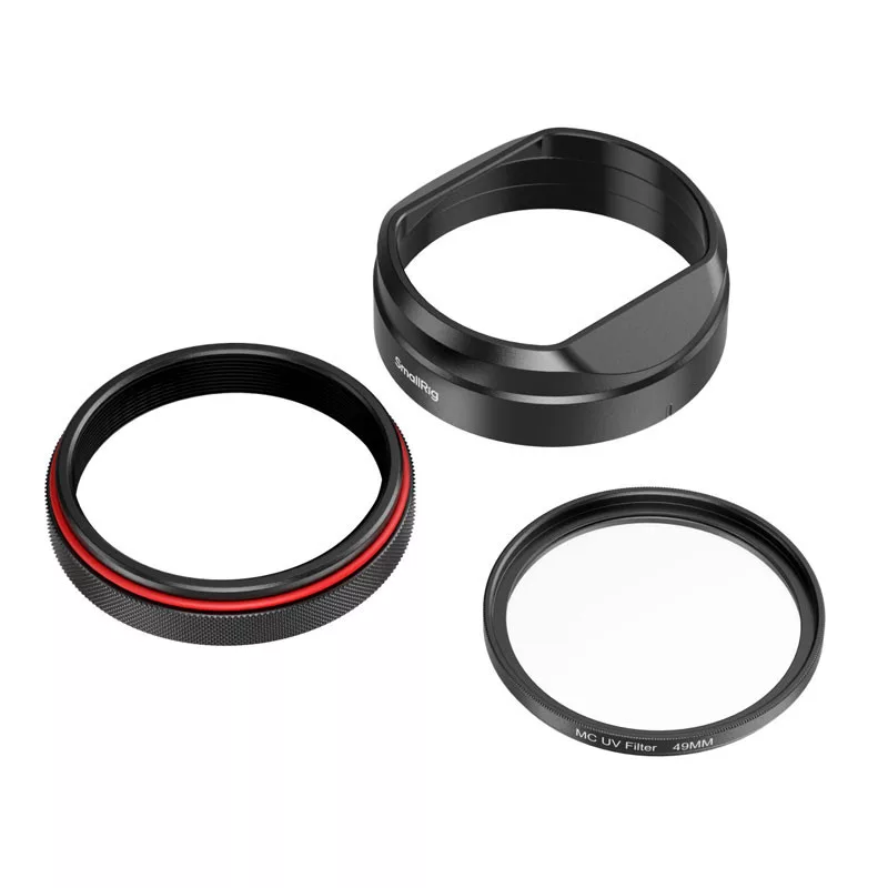 A SmallRig UV szűrő és napellenző szett FUJIFILM X100V és X100VI fényképezőgépekhez a fotózási élmény javítására készült. A könnyű alumíniumötvözetből készült napellenző hatékonyan megakadályozza a nem kívánt fény bejutását az objektívbe, így pontosabb expozíciót biztosít. A fekete belső bevonat csökkenti a becsillanásokat és a tükröződéseket. A UV szűrő többrétegű bevonattal ellátott optikai üvegből készült, amely magas fényáteresztést biztosít, miközben minimalizálja a becsillanásokat és a szellemképeket, a színhelyesség megőrzése mellett. A napellenző menetesen, közvetlenül az objektívre rögzíthető, és továbbra is kompatibilis az objektívsapkával. A mellékelt adaptergyűrű lehetővé teszi 49 mm-es szűrők használatát a napellenzővel együtt.