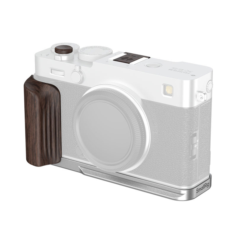 A SmallRig L-alakú rögzítőtalp fa markolattal FUJIFILM X-E5-höz (ébenfa, ezüst) 5984 a fényképezőgép megjelenésének és fogásának egyidejű javítására készült. Az alsó 1/4"-20 csavarral stabilan rögzíthető, a beépített szilikon betétek pedig védelmet nyújtanak a karcolások ellen. Az ergonomikus kialakítás kényelmesebb fogást biztosít, csökkenti a kéz terhelését, és stabilabb kezelést tesz lehetővé hosszabb használat során is. A tömör fából készült markolat természetes, meleg hatású megjelenést ad, miközben visszafogott, retro hangulatot kölcsönöz a fényképezőgépnek.
