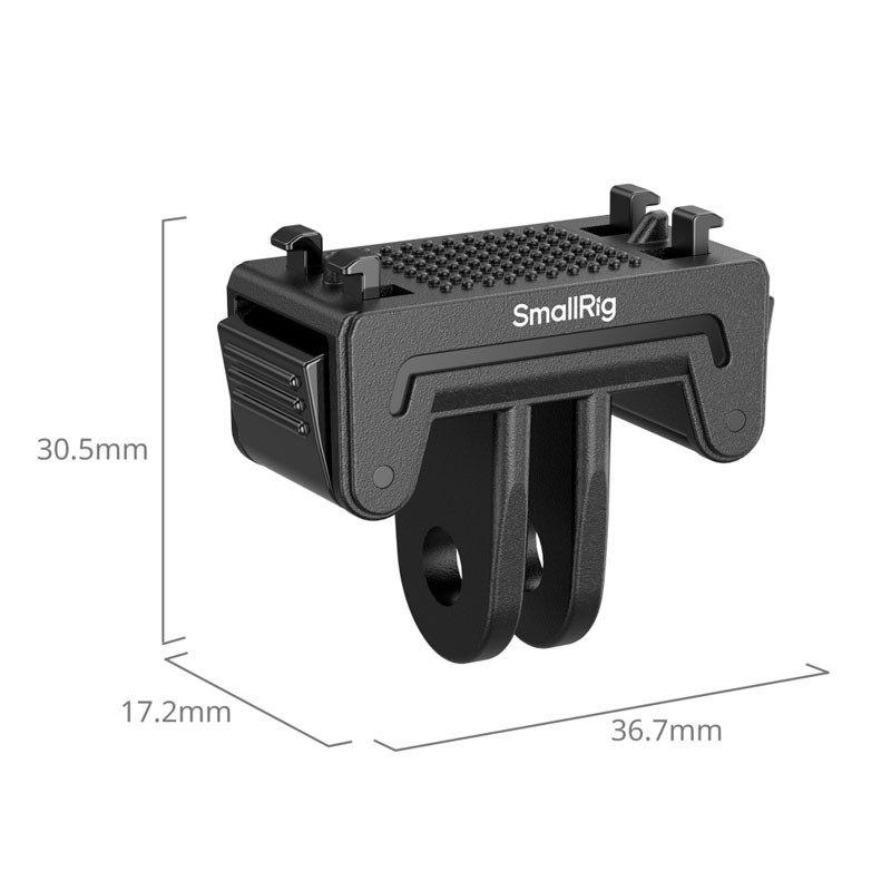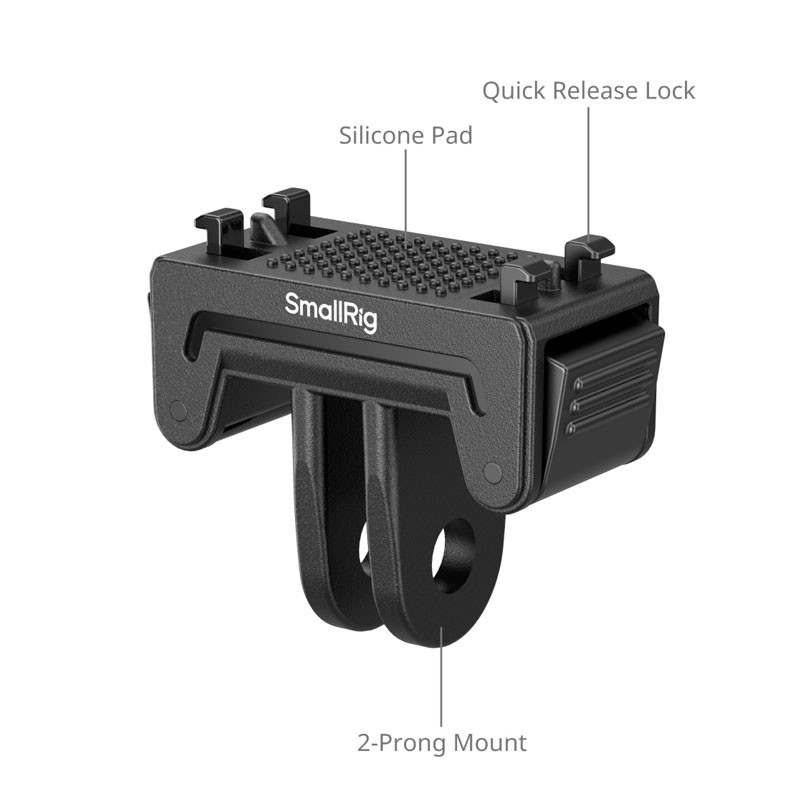Az alsó rész 2 ágú (2-prong) rögzítési kialakítással rendelkezik, amely kompatibilis számos SmallRig kiegészítővel, többek között tapadókorongos tartókkal (ID 5855), „crab” típusú bilincsekkel (ID 4102B), szelfibotokkal (ID 5403), valamint nyakba akasztható tartókkal (ID 5126).