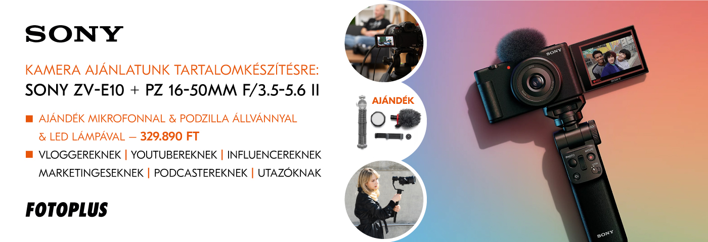 Az egyik legnépszerűbb tartalomkészítő kamera - a Sony ZV-E10 vlogger / podcast kamera - egy kifejezetten tartalomkészítésre fejlesztett, cserélhető objektíves vlogger kamera, amely a Sony Alpha rendszer technológiájára épül.